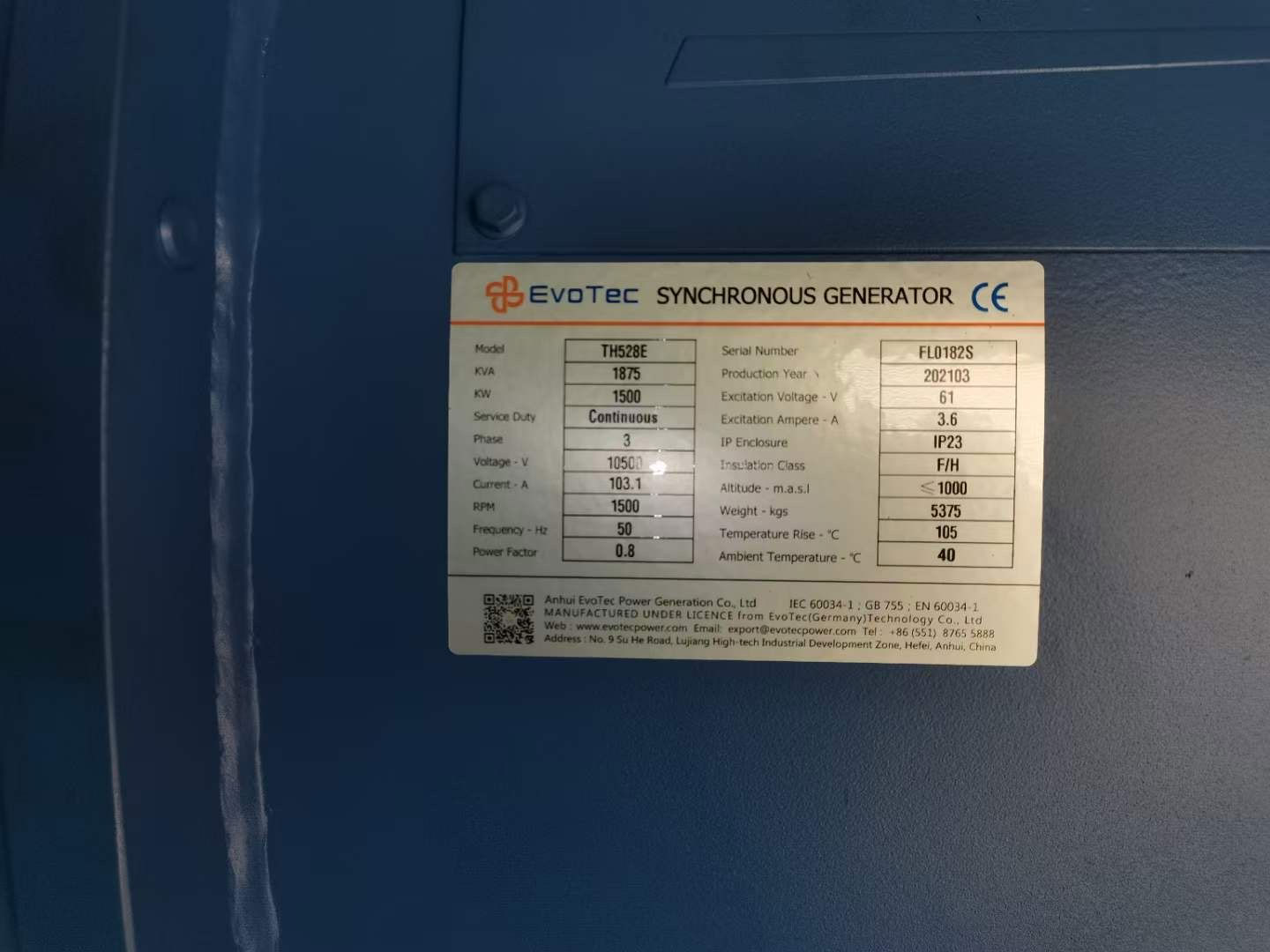 EvoTec 2 units 10.5kv 1300kw h...
