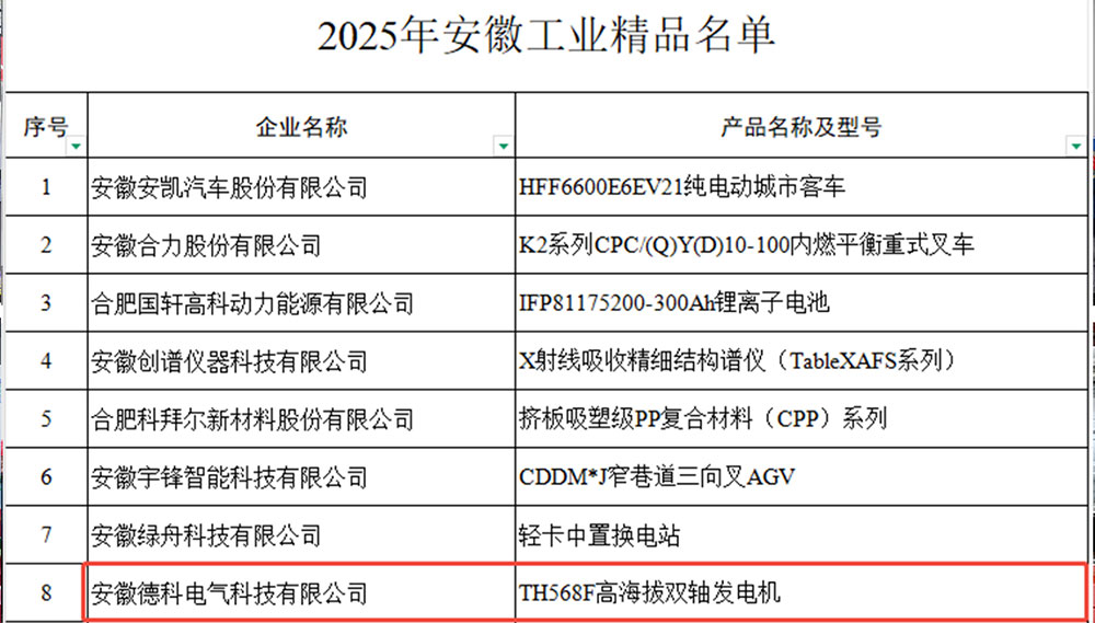 In December 2025, EvoTec’s TH568F high-altitude double bearing generator was selected as one of the “Anhui Industrial Premium Products 2025.” This selection represents authoritative